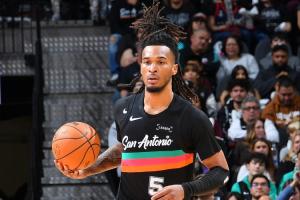 上半场比赛,马刺后卫卡斯尔进攻端表现十分亮眼,不仅内外线投篮弹无虚发,而且还能串联球队。
